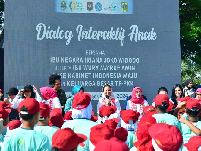 Bogor Wartahariini.com-Ibu Iriana Joko Widodo bersama Ibu Wury Ma’ruf Amin bersama anggota Organisasi Aksi Solidaritas Era Kabinet Indonesia Maju (OASE KIM) menyosialisasikan Ketahanan pangan,Rangkaian kegiatan sosialisasi ini merupakan kolaborasi antara Tim Penggerak Pemberdayaan Kesejahteraan Keluarga (TP PKK) pusat dan daerah, serta pemerintah dalam hal ini Badan Pangan Nasional.